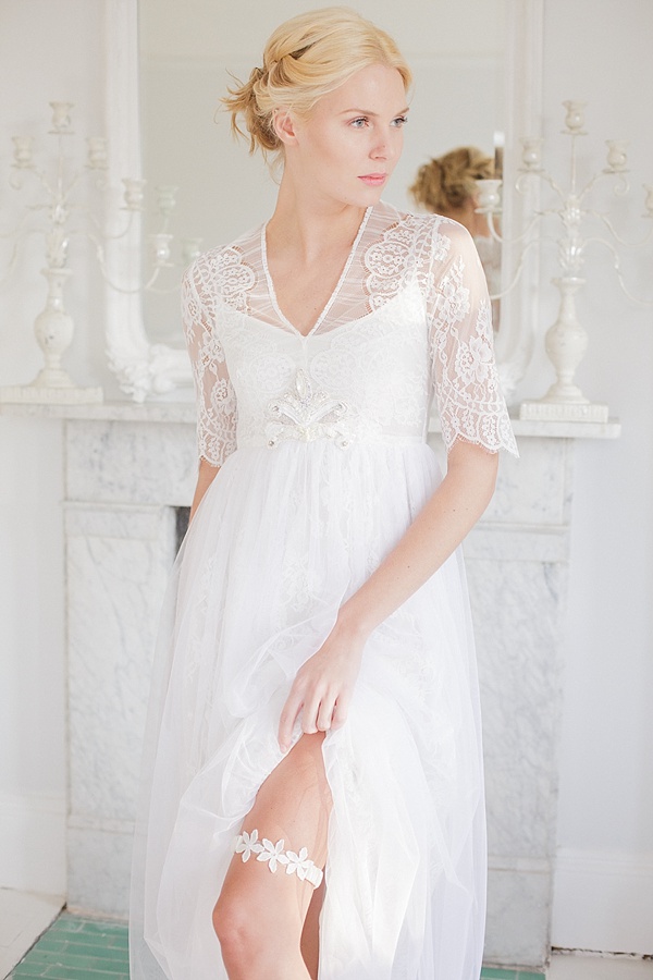 A Gooch & Gawler shoot for the launch of new bridal brand The Wedding Garter Company (part of Britten Weddings). These beautiful, keepsake garters are all handmade in the UK by graduate of London College of Fashion Sarah Jane. Special thanks to Elbie Van Eeden for her light touch with hair and makeup and to model Ana, who reminded us a lot of Kirsten Dunst. Dresses lent with thanks by KATYA KATYA SHEHURINA